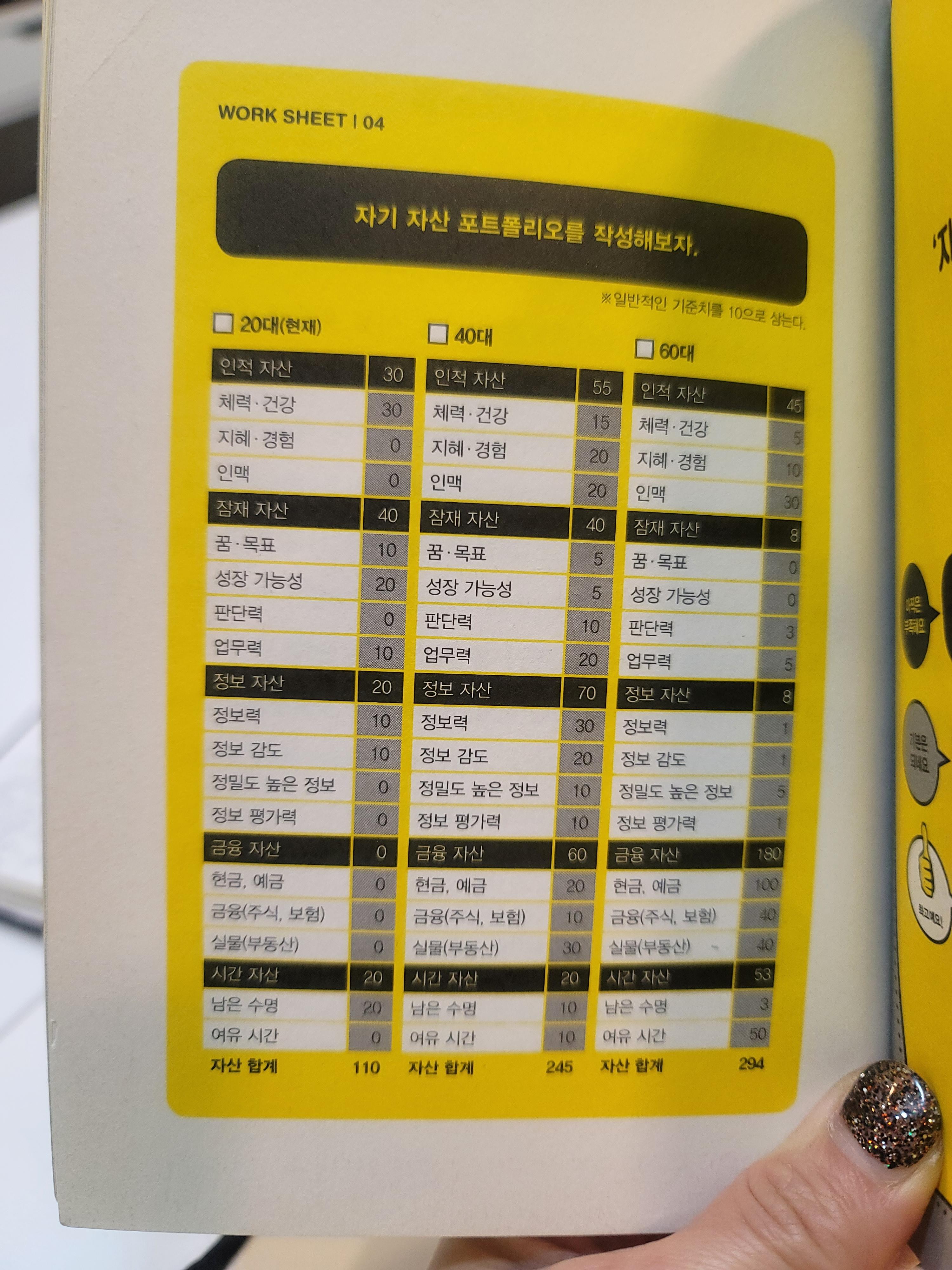 여기서는 부의 그릇을 키울 수 있는 가장 기본적인 개념과 지식들을 다루고 일상생활에서 막연하게 정리하던 나의 돈 사용 워크시트를 제공해서 책을 보면서 나 자신의 부의 그릇을 평가해 볼 수 있다